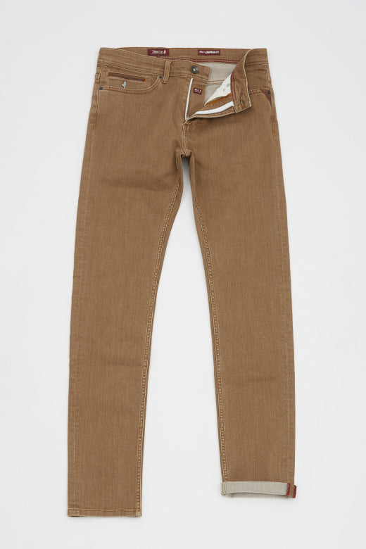 Regular tapered jeans met kasjmier achterkant:Regular tapered fit 201US-maatGewassen jeansTabakskleurige stikselsEén ticketzakje met leren detailMetalen logo op het ticketzakjeStretchdenim voor optimaal comfort98% katoen 2% ela...