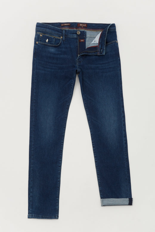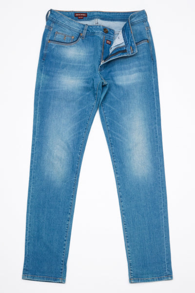 Regular tapered two-tone jeans:Regular tapered fit 201US maatTabaks- en marineblauwe stikselsTwee paspelzakken voor kaartjes op elke zakMetalen logo op de zak voor kaartjesStretch denim voor optimaal comfort98% katoen 2% elasta...