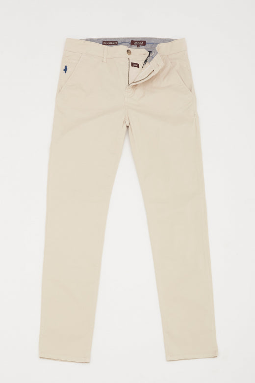 BeschrijvingDe stretch popeline chino:-2 Italiaanse zakken en een ticketzak aan de voorkant-2paspelzakken met knopen aan de achterkant-Zaktas van fancy bedrukte stof-Contrasterend borduursel op de rechter voorkant tijdens het d...