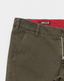 Chinobroek met print, regelmatige taps toelopende snit, borduursel