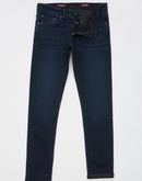 - De Jeans meet 116 cm lang en 43,5 cm in 1/2 tailleomtrek voor een