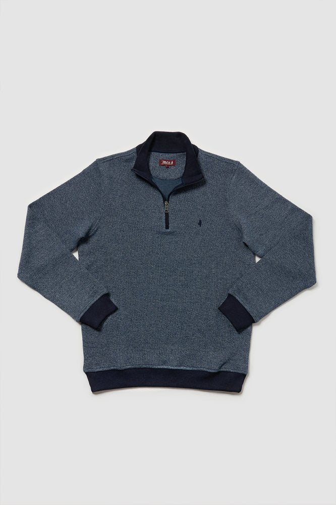 Tweekleurige sweatshirt met rits en hoge hals:Sweatshirt met rits en hoge hals van tweekleurige Selenic-stof.Ritskraag in contrasterende stof.Lange mouwen. Contrasterendegeribbelde manchetten, kraag en onderkant van het sweatsh...