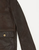 knoopsluiting op de linkerschouder Twee dubbele zakken aan de voorkant, waarvan één met een knoopsluiting Drie binnenzakken Samenstelling: geitenleer .Onderhoudsadvies: Chemisch reinigen door een leerprofessional