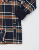 Groot geruit overshirt met fluwelen details: Dikke geruite stoffen