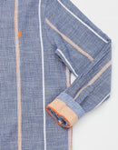 - Denim bias aan de kraagband en aan de binnenkant van de manchet