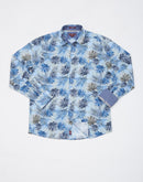 – Contrasterende chambray stof binnen kraagband, onder kraag en binnen manchetten