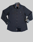 Poplin shirt bedrukt met ruit- en streepmotieven