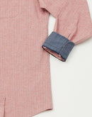 - Onderkraag, kraagband en binnenmanchet in contrasterende stof