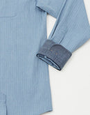 - Onderkraag, kraagband en binnenmanchet in contrasterende stof