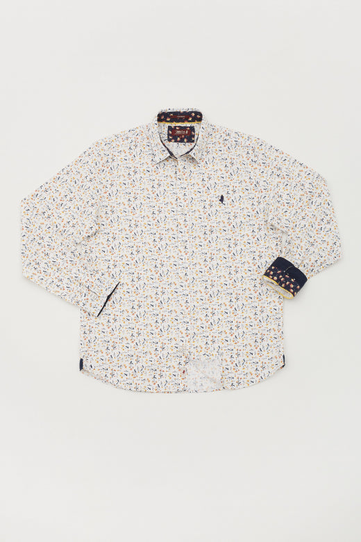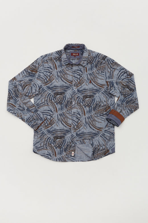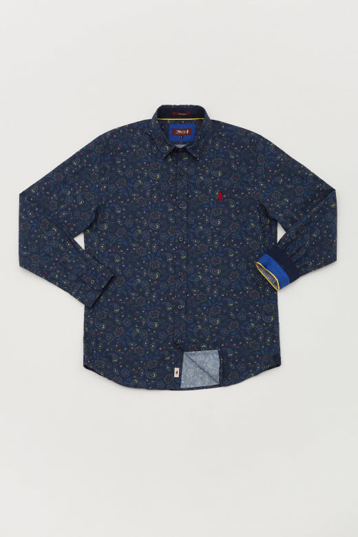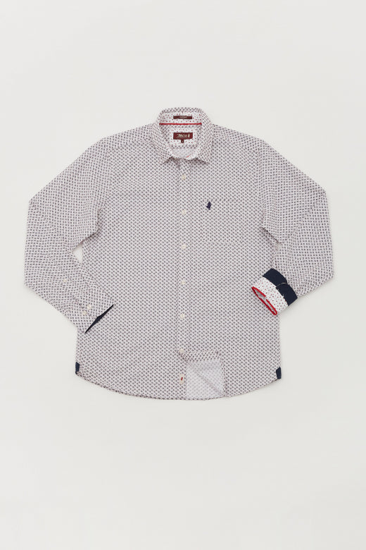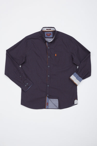 BeschrijvingOverhemd met microdesign- Lange mouwen -Puntkraag met knoop- Binnenkant kraag en manchetten in bedrukte stof en chambray, onderkraag in chambray- Knoopsluiting in chambray met gekleurde biezen- Bedrukte zwaluwen- Ge...