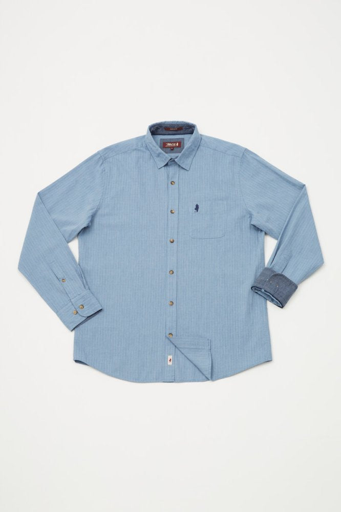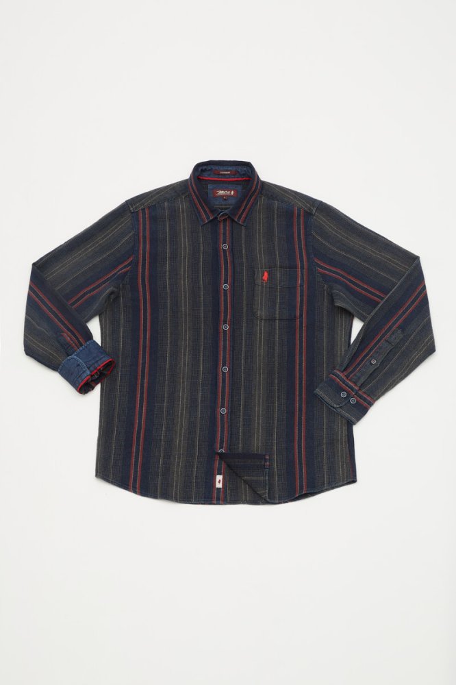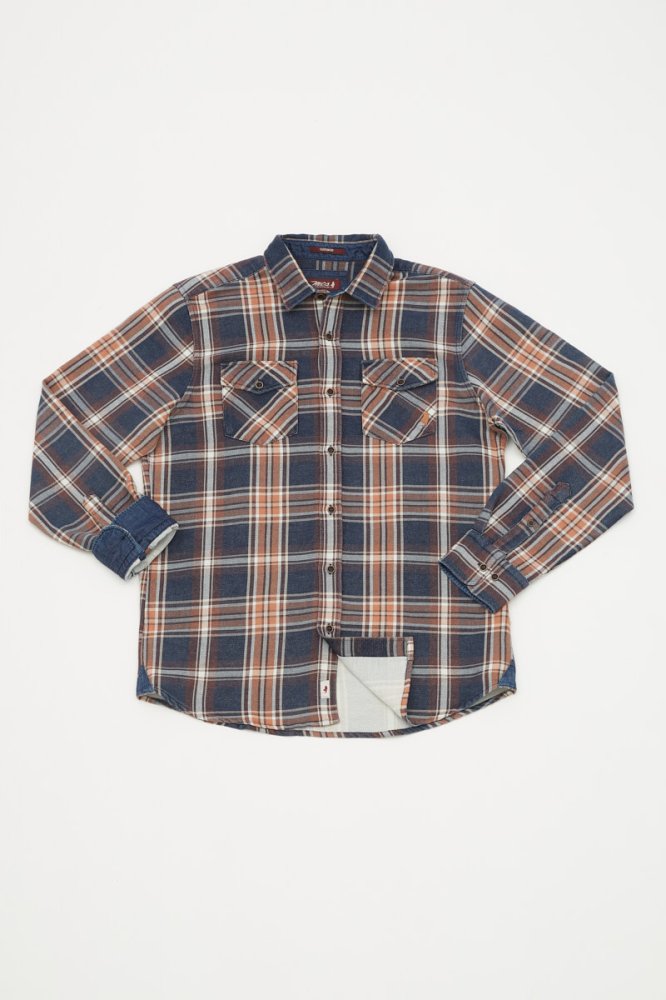 Dubbelzijdig overhemd met geldige binnenkant: - Dubbelzijdig overhemd met geldige binnenkant - Indigo stof - Onderkraag, kraagband en binnenmanchet in contrasterende stof - Eén borstzak - Rechte snit - Logo bestrij...
