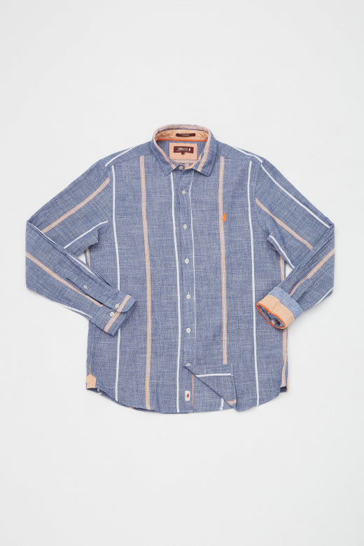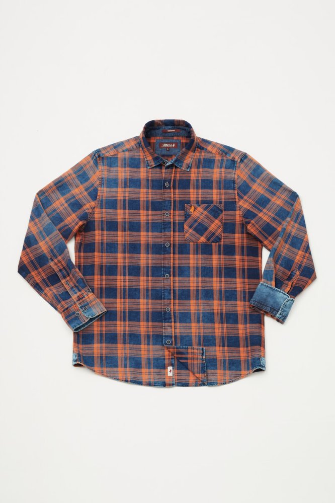 - Dubbelzijdig geweven en geverfd denim overhemd met ruitjes