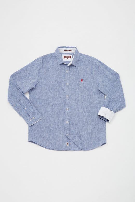 Geverfd geweven overhemd:- Zachte kraag- Geborduurd ruiter in het hart- Opening met een knooplipje in het midden van de voorkant- Lange mouwen met manchetten- Binnenkraag en manchetten in effen stof- Samenstelling: 70% katoen 3...