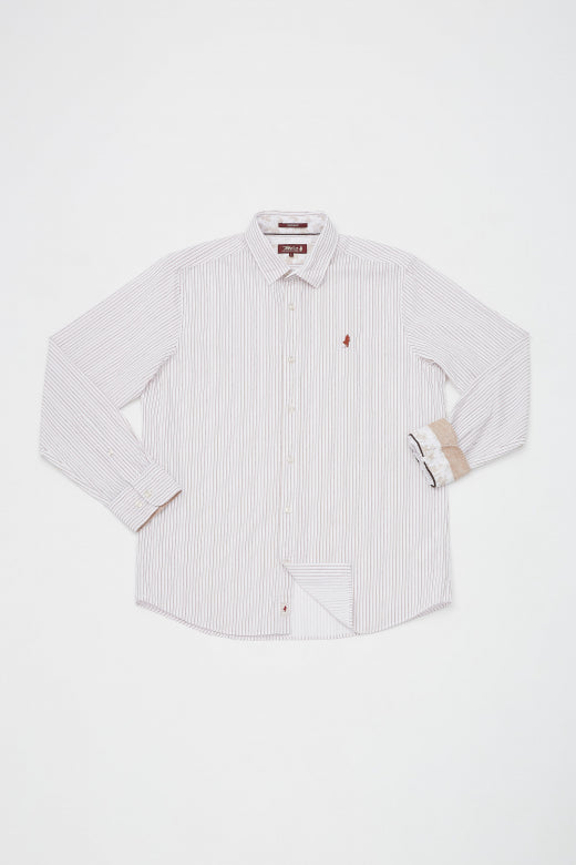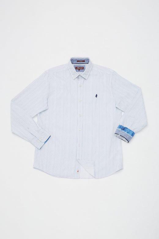 Seersucker gestreept overhemd met print:- Bedrukt popeline seersucker overhemd met strepen- Onderkraag, kraagband en binnenmanchet van contrasterende stof- Rechte snit- Geborduurd logo op het hart- Zachte kraag- Gekleurde bieze...