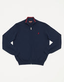 Hoge kraag met twee contrasterende strepen aan de binnenkant
