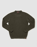 MCS Rider-logo leren patch op de geribbelde zoom aan de onderkant van de trui