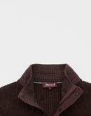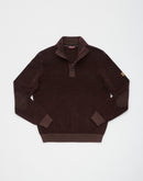 Vintage katoenen trui met 1/2 rits: - Opstaande kraag met ritssluiting en lipje met drukknoop - Contrasterende binnenband
