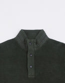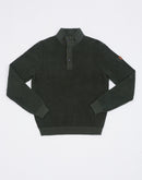 Vintage katoenen trui met 1/2 rits: - Opstaande kraag met verbrandings en lipje met drukknoop - Contrasterende binnenband