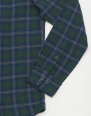 - Onderkraag, kraagband en binnenkant manchet in contrasterende stof